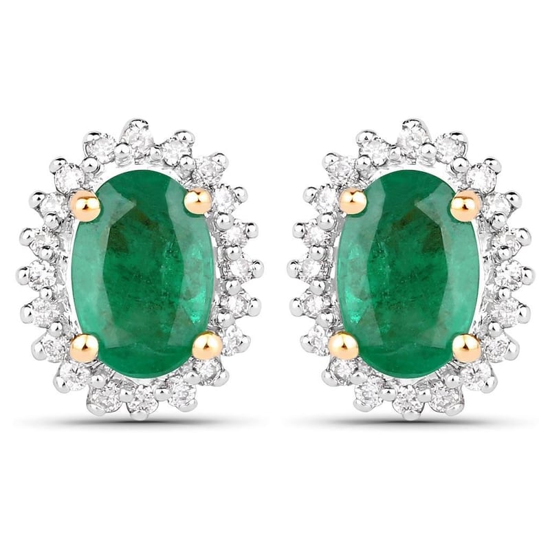 Exquisite 9K Yellow Gold Zambian Emerald and Diamond Earrings