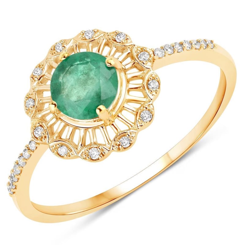 Exquisite 9K Yellow Gold Ring with Zambian Emerald and Sparkling White Diamonds