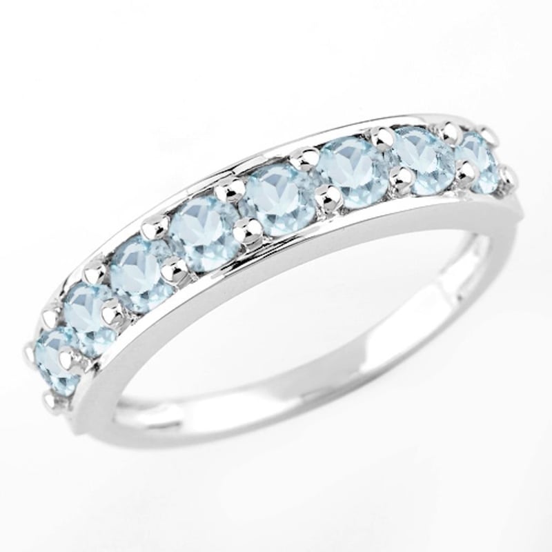 Stunning 9K White Gold Aquamarine Ring – 8 Pristine StonesIndulge in the serene elegance of this exquisite 9K white gold ring, meticulously crafted to showcase eight dazzling aquamarines, each a perfect 3.00mm round gemstone. The ethereal blue hues of the aquamarine evoke the tranquil depths of the ocean, offering a refreshing touch that is both timeless and enchanting.This ring is a harmonious blend of contemporary design and classic sophistication. The lustrous white gold setting enhances the brilliance of each aquamarine, allowing the stones to shimmer and shine with every movement. Whether worn as a statement piece for a special occasion or as a cherished addition to your everyday ensemble, this ring exudes an aura of refined luxury.Perfect for those born in March or anyone who appreciates the calming beauty of aquamarine, this ring is more than just a piece of jewelry; it is a treasure that tells a story of elegance and grace. Elevate your jewelry collection with this captivating piece, where sophistication meets artistry. Bid now to make this stunning ring your own, and let its beauty shine in your life.