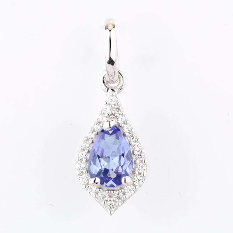 Indulge in the elegance of this exquisite 9K white gold pendant, a true testament to the art of fine jewelry design. Featuring a captivating tanzanite pear gemstone measuring 6x4mm, this pendant radiates a mesmerizing violet-blue hue that enchants the eye and elevates any ensemble. The tanzanite is beautifully complemented by a symphony of shimmering diamonds, with 13 pieces of round diamonds (0.80mm) and 9 pieces (1.00mm) that catch the light with every movement, creating a brilliant cascade of sparkles.