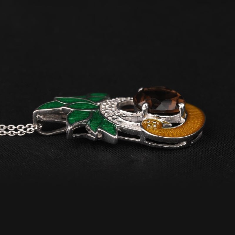 Smoky Quartz Radiant Elegance: 925 Silver with Rhodium Plating