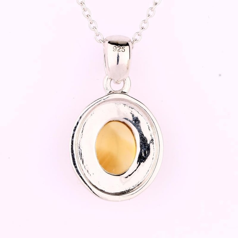 Citrine CAB Elegance Reimagined: 925 Silver with Rhodium Finish