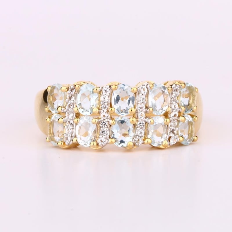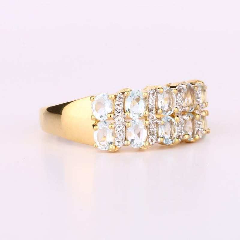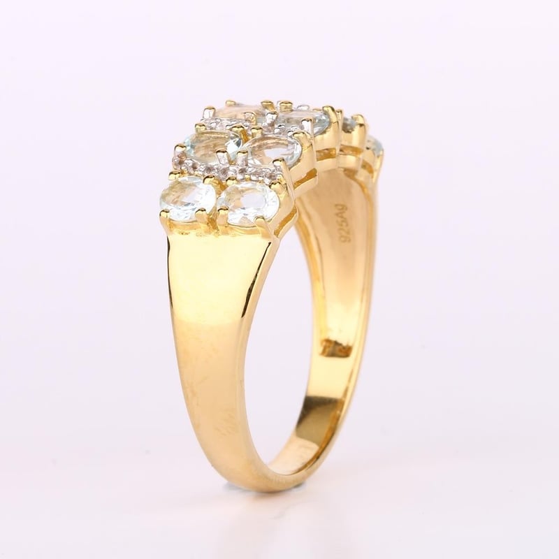 Aquamarine ( Elegant 925 Silver Ring with Luxurious Yellow Gold Plating