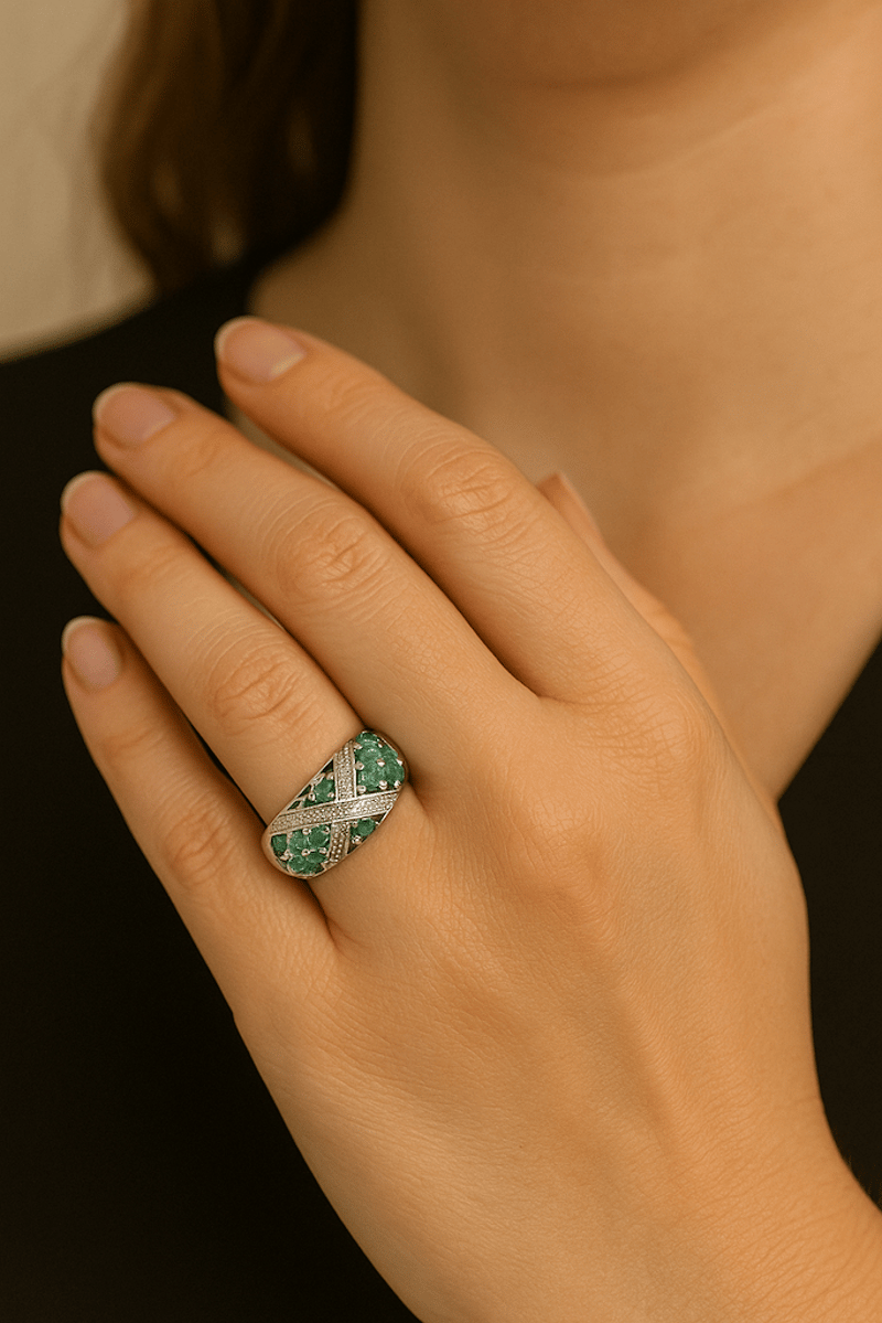 Sakota Emerald Radiant Elegance: 925 Silver with Rhodium FinishImmerse yourself in the allure of this exquisite 925 silver piece, elegantly adorned with a lustrous rhodium finish that enhances its brilliance and durability. The gleaming surface captures the light with every movement, casting a captivating glow that is sure to draw admiring glances. This stunning jewelry item exemplifies sophistication and modernity, making it a perfect addition to any collection or a thoughtful gift for a loved one. Crafted for comfort and designed for impact, the piece features intricate detailing that showcases the artistry of skilled craftsmanship. Whether worn for a special occasion or as an everyday statement, this 925 silver treasure is a timeless testament to grace and luxury. Elevate your style and let your elegance shine with this remarkable jewelry auction find.