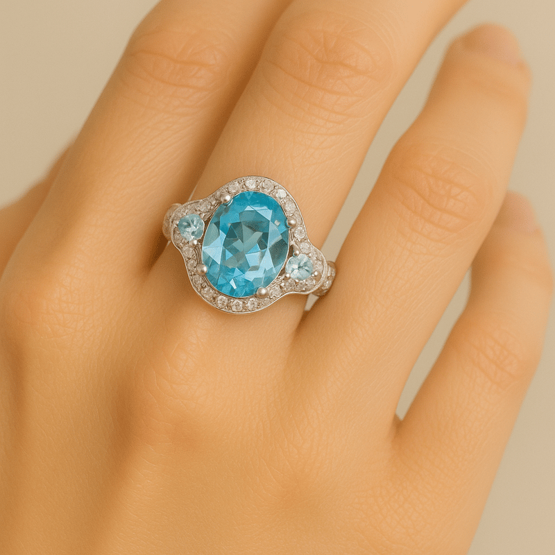 Blue Topaz Elegant 925 Silver with Rhodium Finish: Timeless SophisticationIndulge in the allure of our stunning 925 silver piece, elegantly enhanced with a lustrous rhodium finish. This exquisite jewelry item captures the essence of modern sophistication, boasting a radiant shine that effortlessly complements any ensemble. The high-quality sterling silver serves as the perfect canvas for this opulent treatment, ensuring durability while elevating its aesthetic appeal.Meticulously crafted, the piece features intricate details that reflect light in a mesmerizing dance, making it a statement of elegance and style. Whether worn for a glamorous evening out or as an everyday accessory, this versatile treasure is designed to captivate and inspire.Embrace the luxury and timeless charm of this 925 silver jewelry with rhodium finish—a perfect addition to any jewelry collection or a thoughtful gift for someone special. Elevate your style and make a lasting impression with this exquisite piece that embodies both beauty and grace.