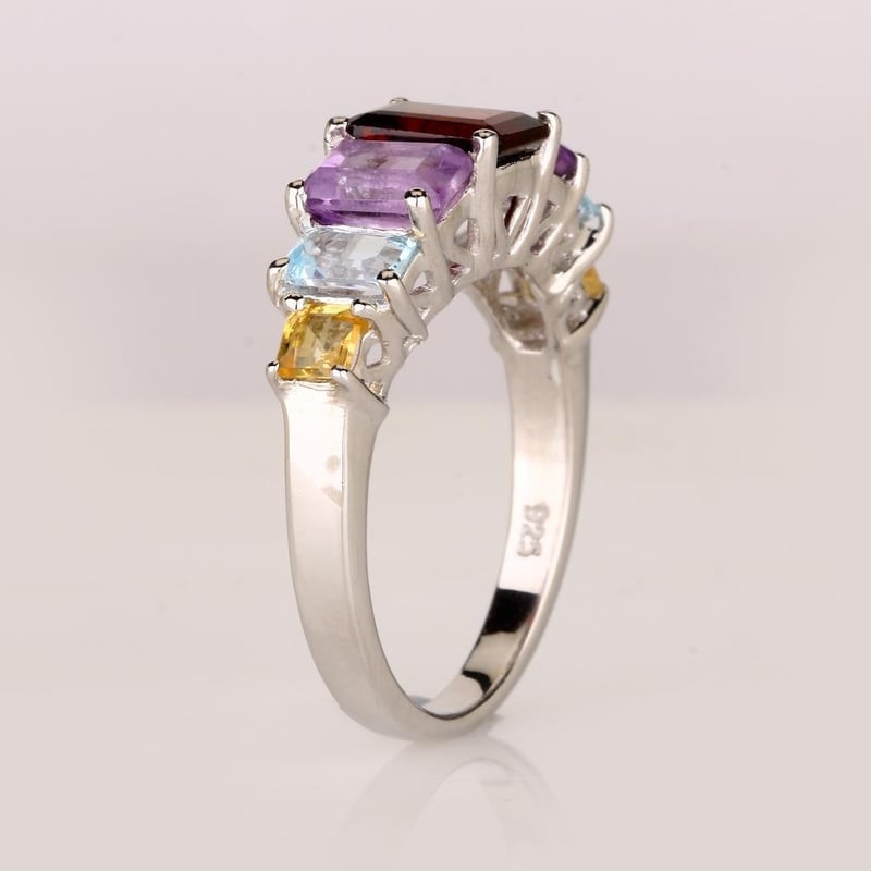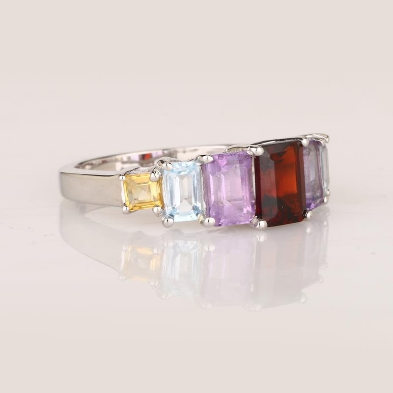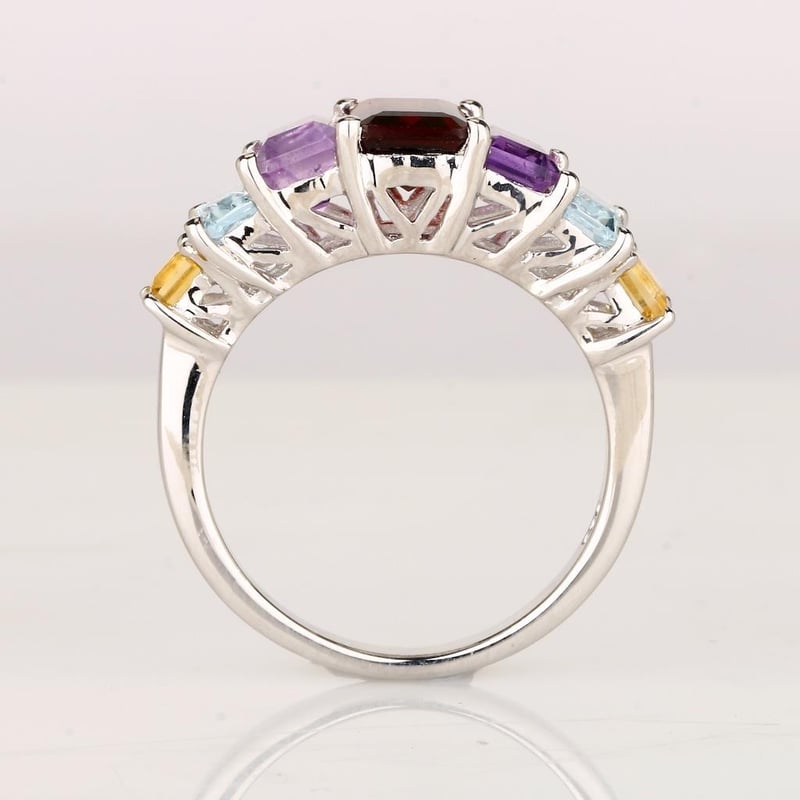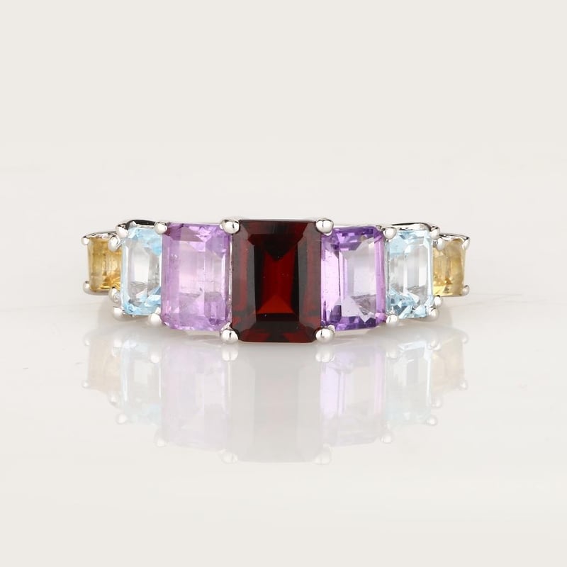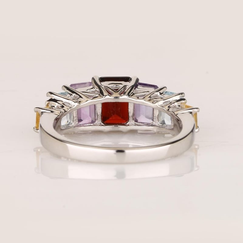 Garnet Octagon Elegance Refined: 925 Silver with Rhodium Finish