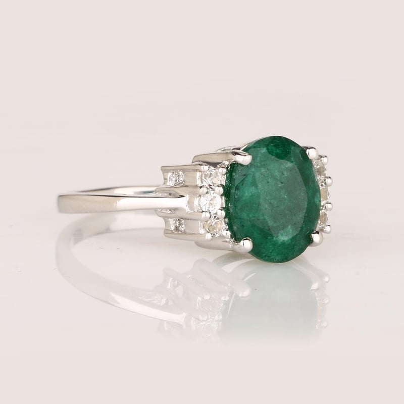 Dyed Emerald Radiant Elegance: 925 Silver with Rhodium Finish