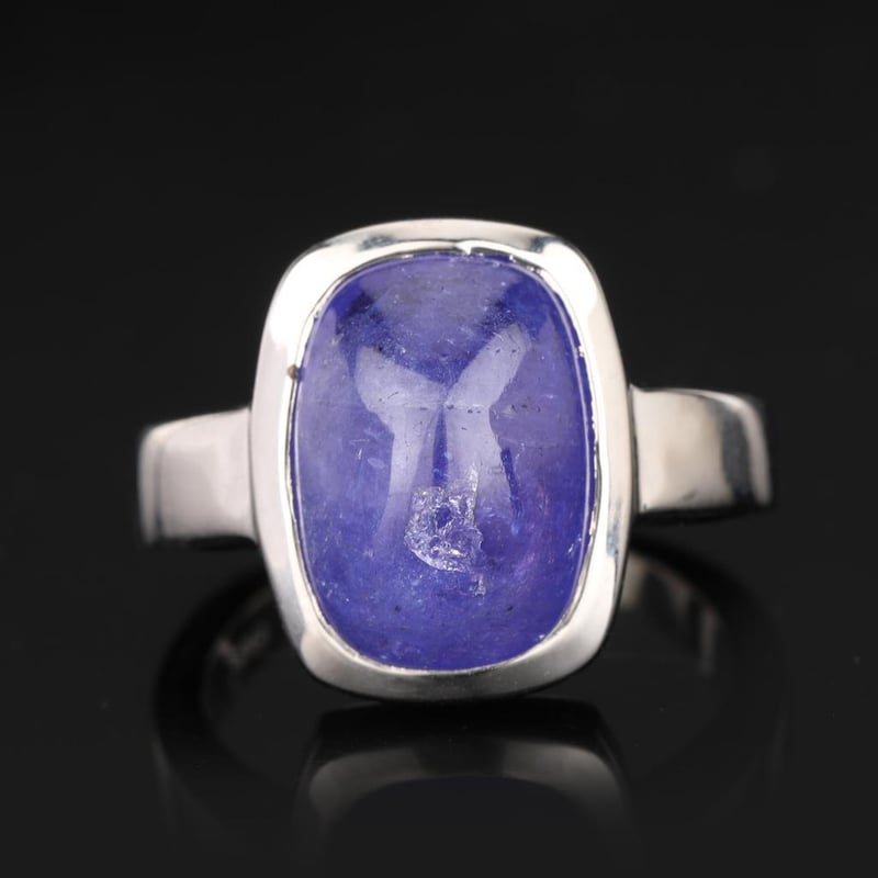 Tanzanite CAB Elegance in Every Detail: 925 Silver with Rhodium Finish