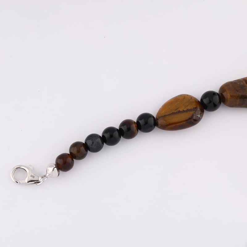 Tiger Eye Elegant Rhodium-Plated 925 Silver Bracelet