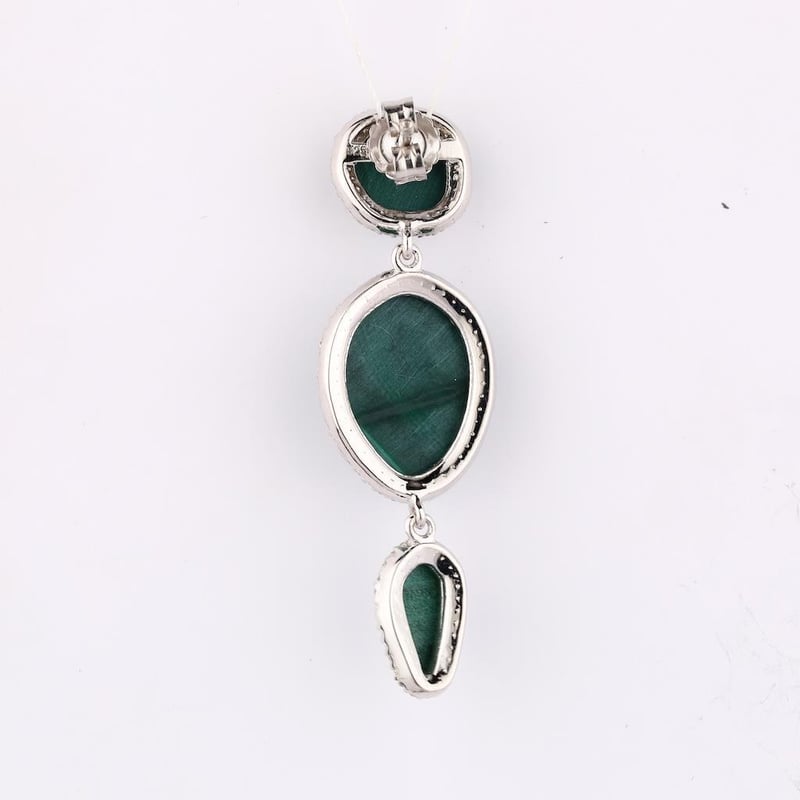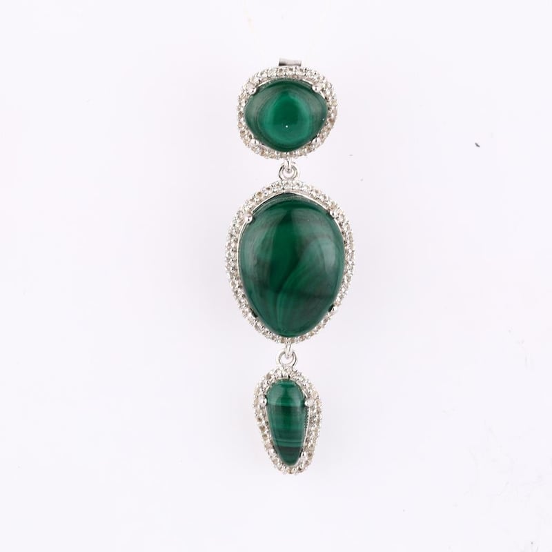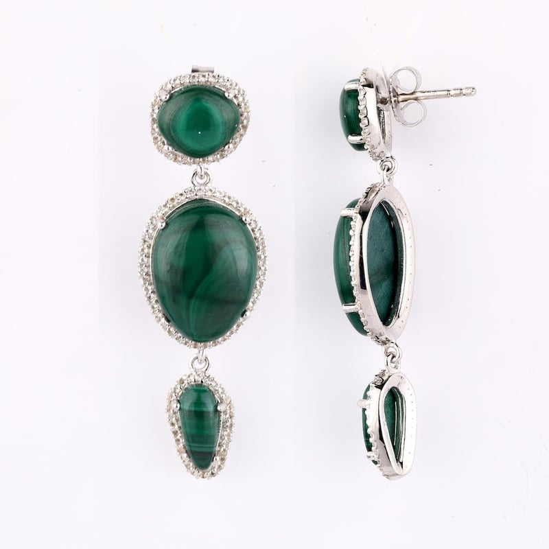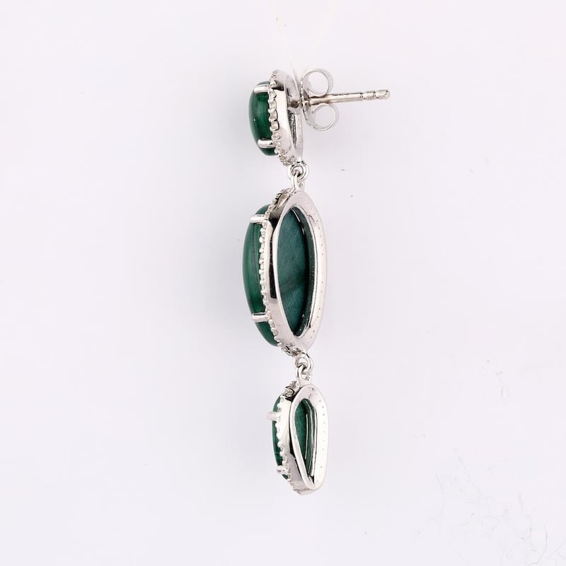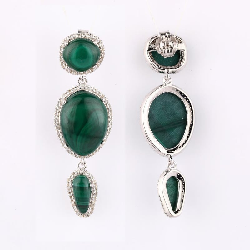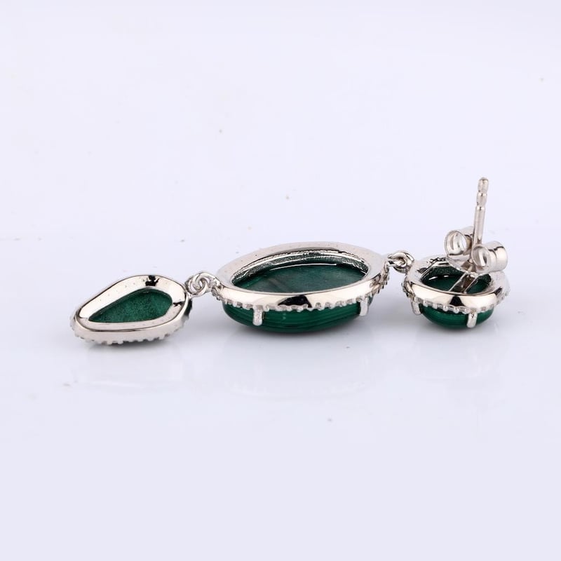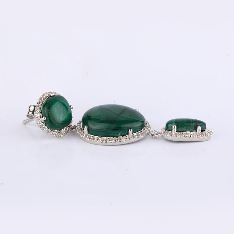 Malachite, White topaz Elegant 925 Silver Rhodium-Plated Earrings