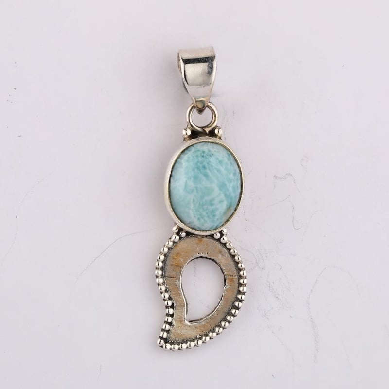 Larimar Elegance in Silver: Exquisite 925 Silver Pendant