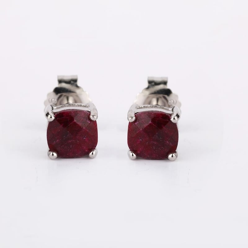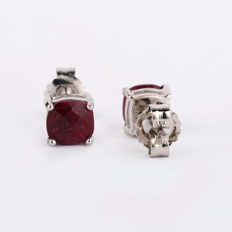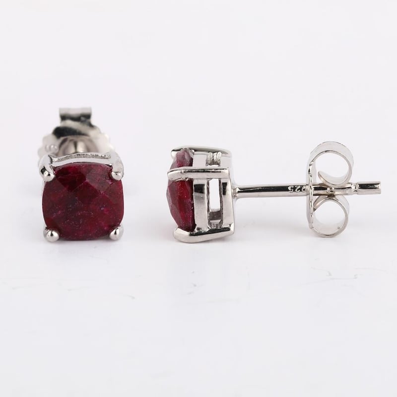 Dyed Ruby Ethereal Elegance: 925 Silver Earrings with Platinum Plating