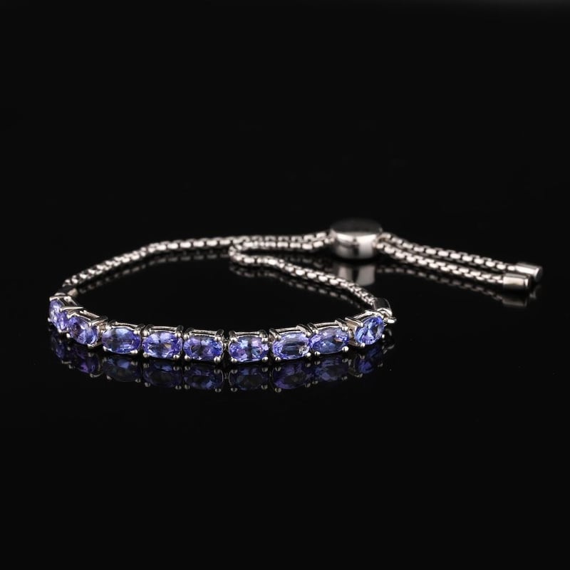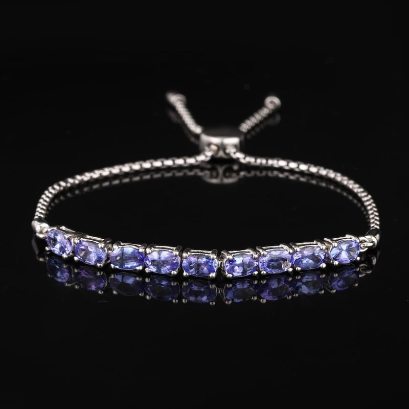 Lavender Tanzanite Elegance in Silver: Rhodium-Plated 925 Silver Bracelet