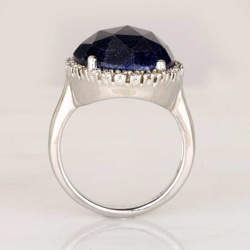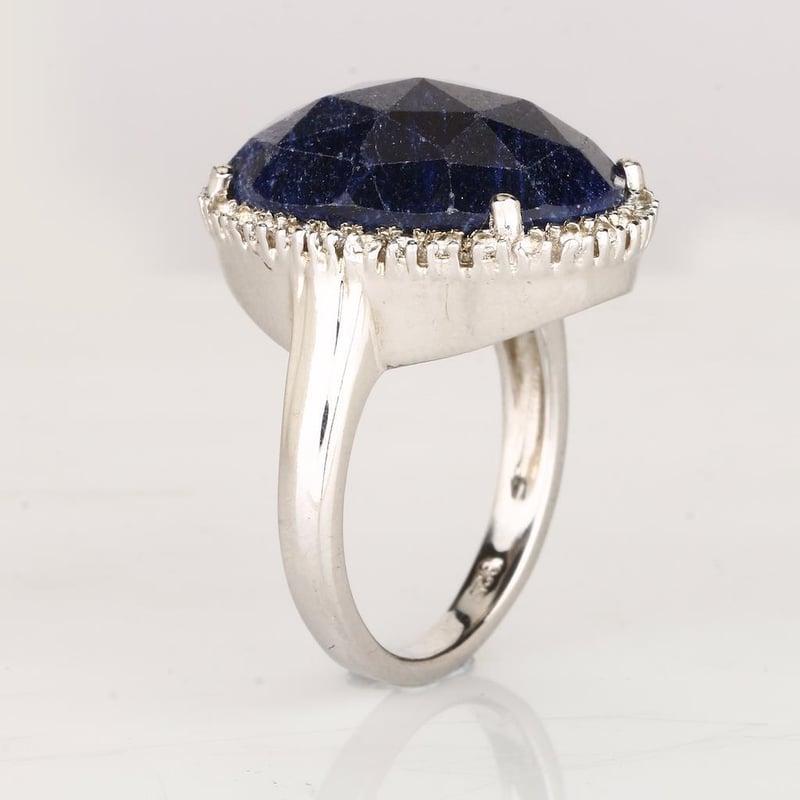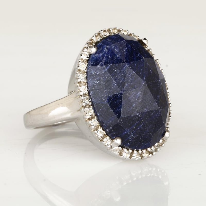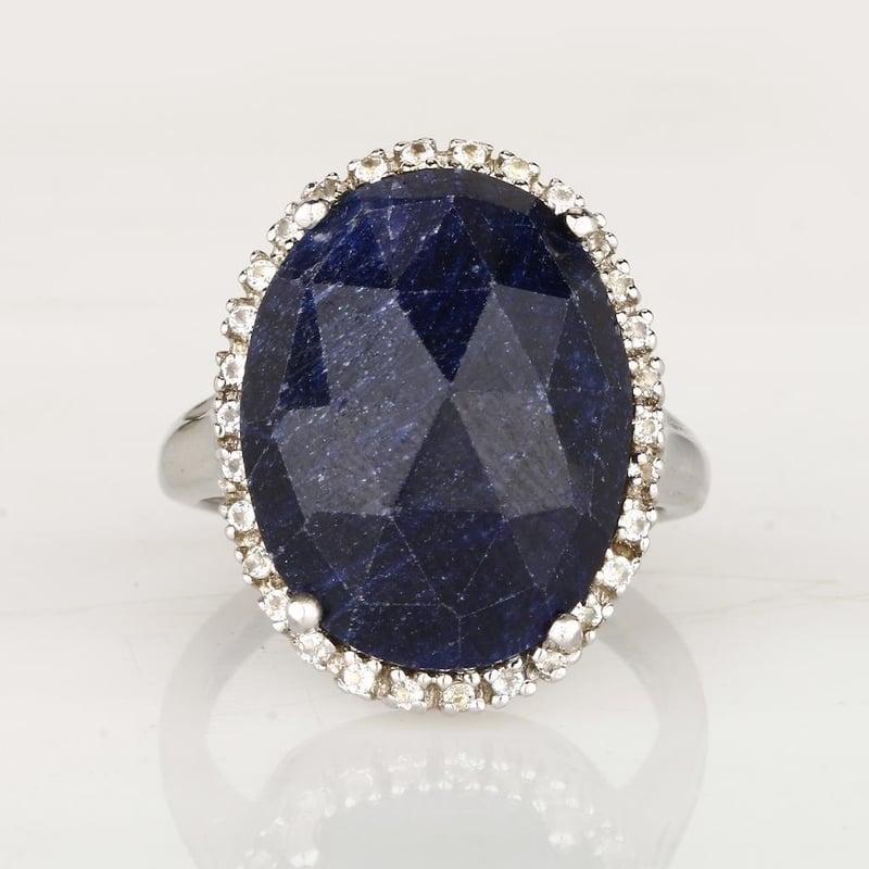 Dyed Sapphire, White Topaz Elegance in Silver: Rhodium-Plated 925 Silver Ring