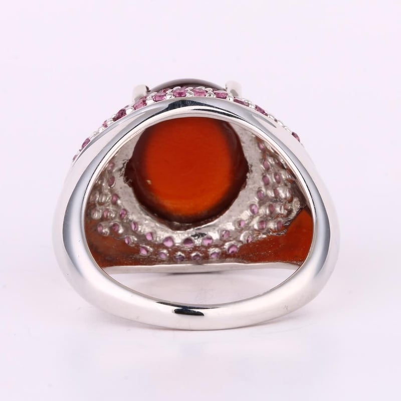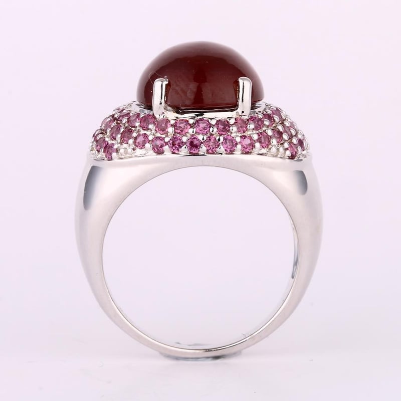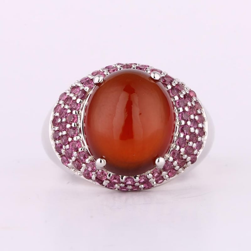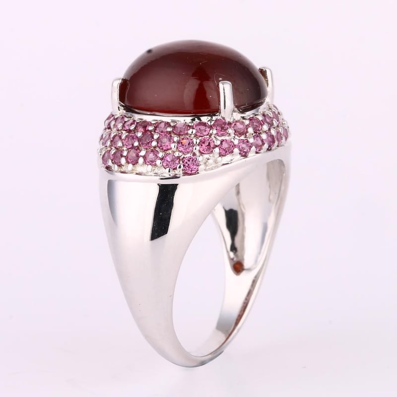 Hessonite, Rhodolite Radiant Elegance: 925 Silver Ring with Rhodium Finish