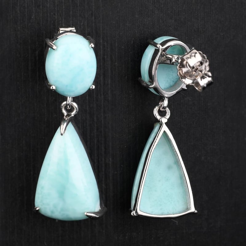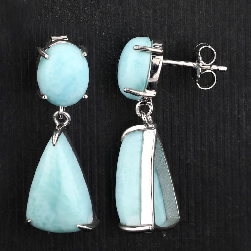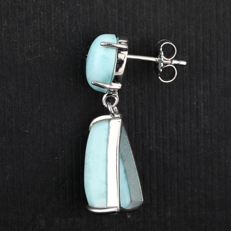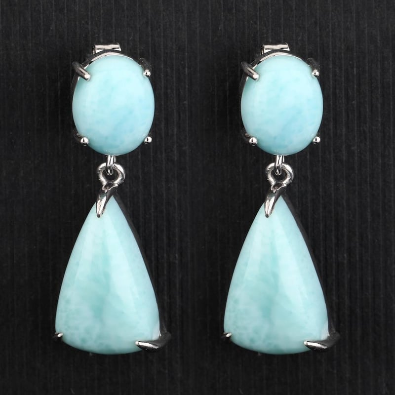 Larimar Radiant Elegance: 925 Silver and Rhodium Earrings