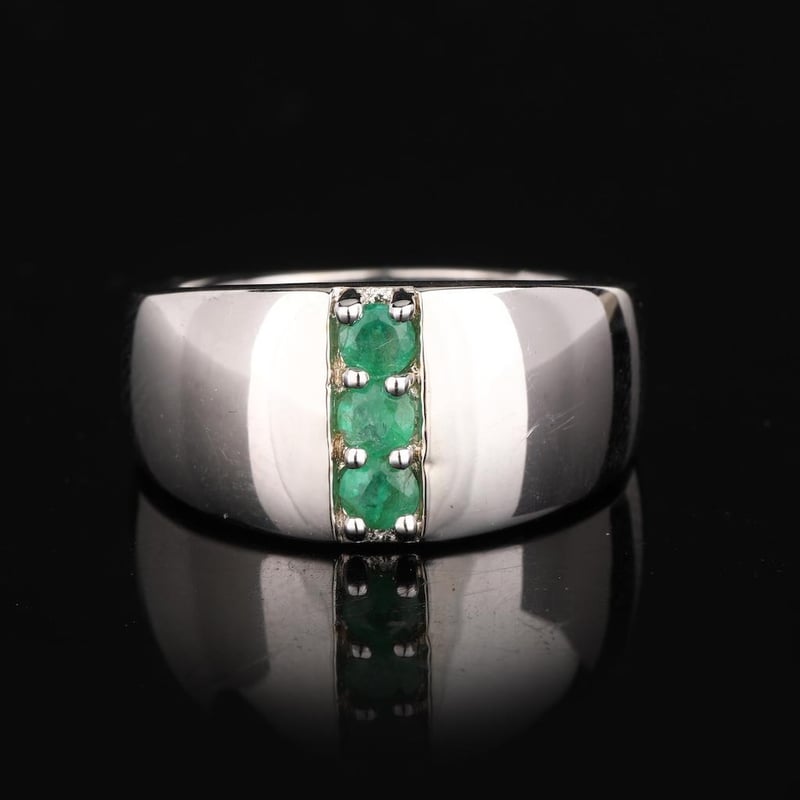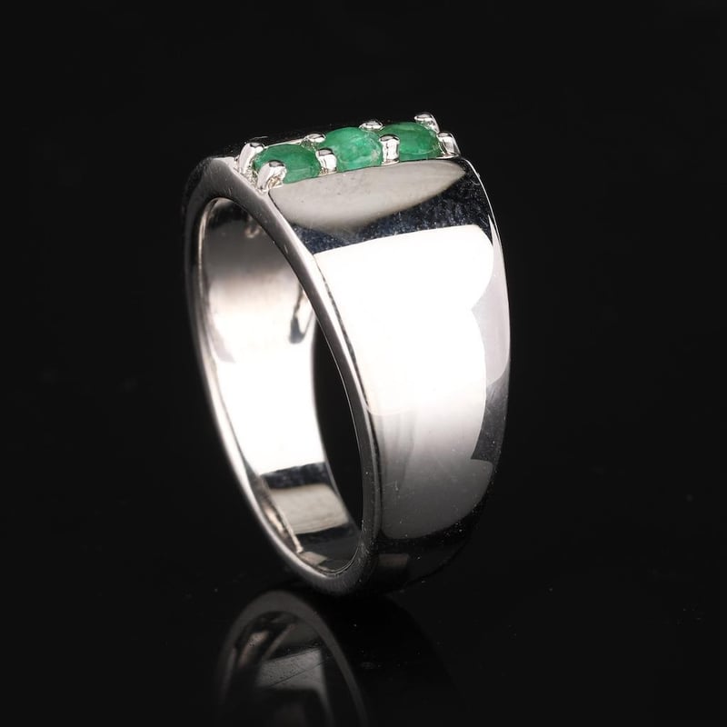 Zambian Emerald Elegant 925 Silver Ring with Rhodium Finish