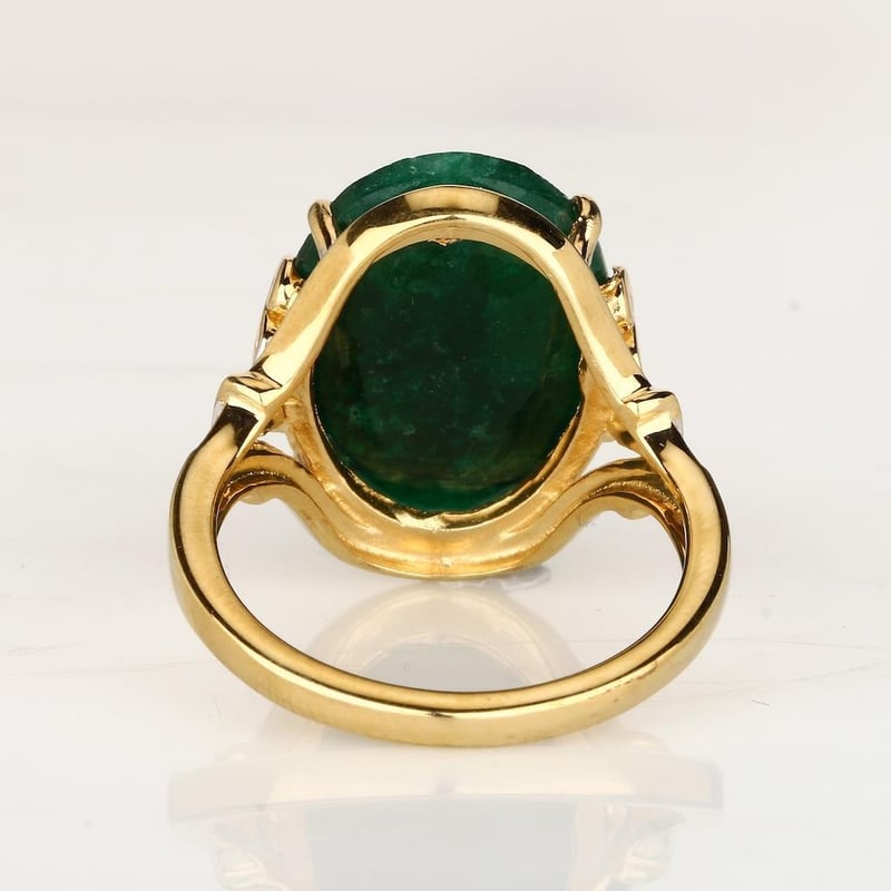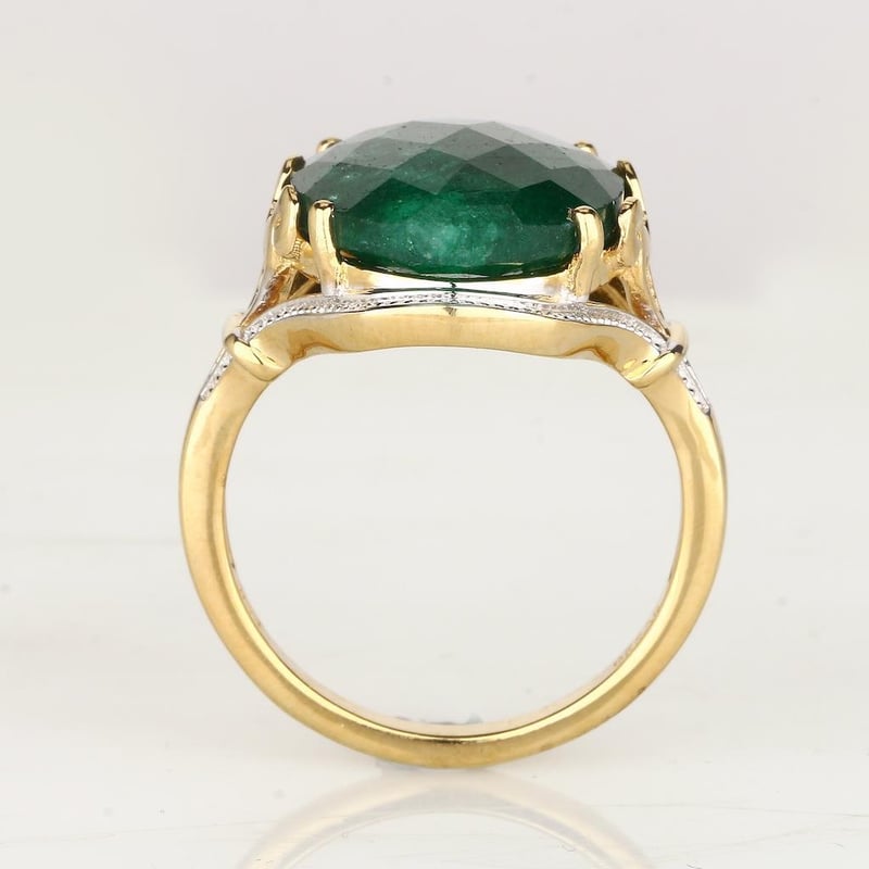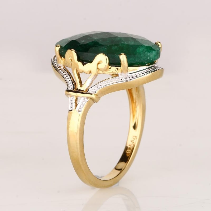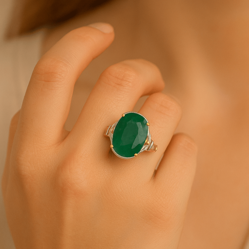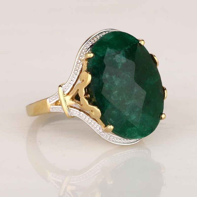 Dyed Emerald Elegance in Contrast: 925 Silver with Radiant Yellow Gold Plating Ring