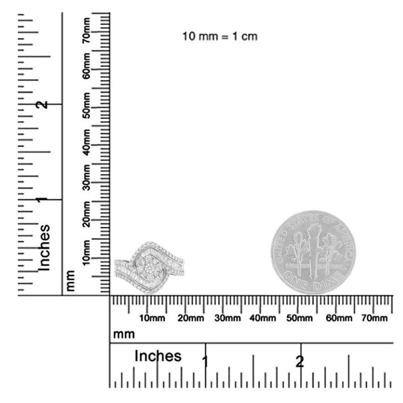 14K White Gold 1.0 Cttw Baguette & Brilliant-Cut Diamond Round Floral Cluster Engagement or Fashion Ring with Swirl Wrapped Triple Row Band (H-I Color, SI2-I1 Clarity) - Size 6-3/4 Make a classy and stylish style statement with this incredible diamond ring. Fashioned in 14k white gold, this fashion ring is framed in the prong setting with round and baguette-cut diamonds. Chiseled by top and skilled artists, this ring is a perfect example of creative art.