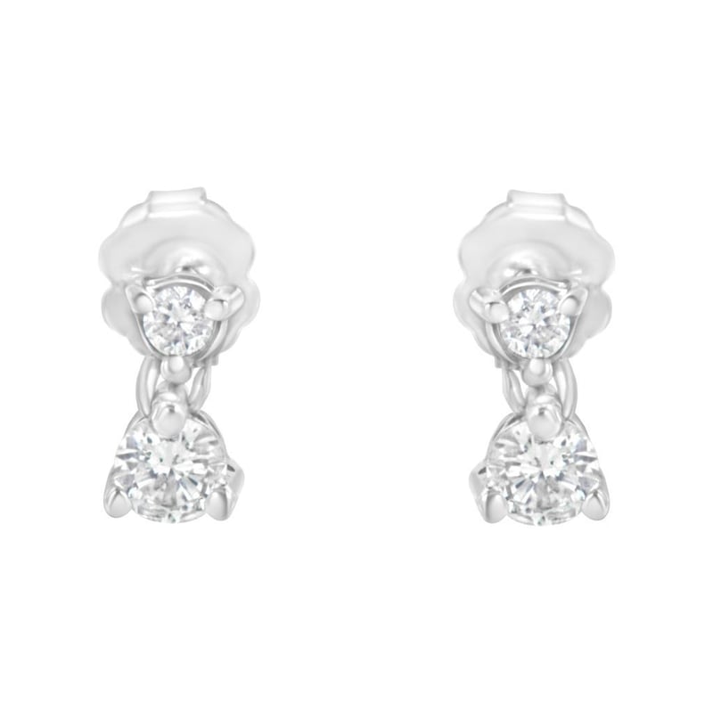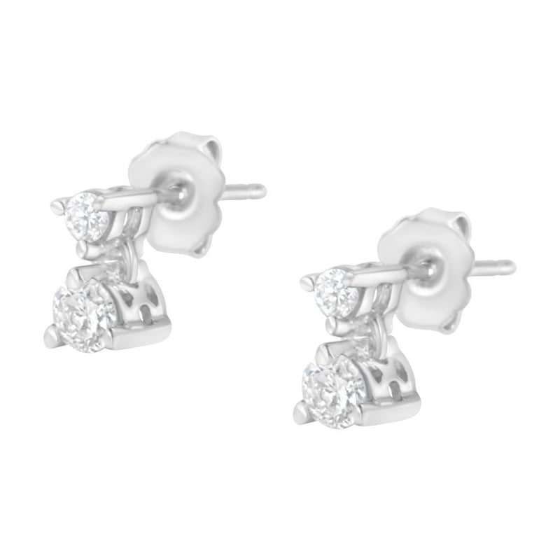 14KT White Gold 1/2 cttw Double Diamond Dangle Stud Earrings (H-I, I1-I2) With a simple and elegant design, these 14k white gold dangle stud earrings will enhance any ensemble. 1/2 carat TDW of round cut diamonds glimmer in these adorable earrings that finish off with a secure push back secure fit.