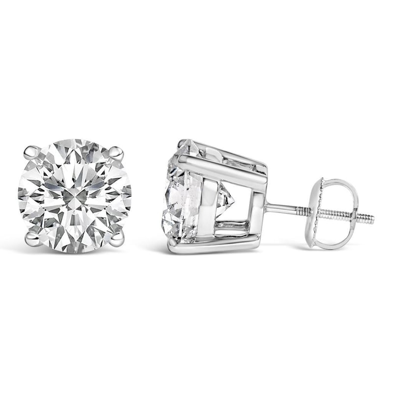 14K White Gold 5.0 Cttw Round Lab Grown Diamond Solitaire Stud Earrings with Screw Backs Add a touch of elegance and sophistication to your wardrobe with these classic round brilliant-cut lab-grown diamond stud earrings. Crafted from luxurious 14K white gold, these earrings showcase a total weight of 5.00 cttw of lab-grown diamonds, boasting impeccable white color and near flawless clarity. Expertly set in a 4-prong setting, each diamond is secured with screw backs, ensuring their safety and longevity. These lab-grown round diamond studs will effortlessly elevate any outfit, from casual to formal, making them a versatile and essential addition to your jewelry collection. These earrings are perfect for gift-giving or for treating yourself to a timeless treasure. Don't miss out on the opportunity to own these stunning pieces of jewelry.