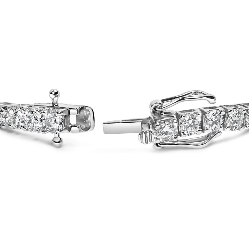 14K White Gold 3.00 Cttw Prong Set Lab Grown Round Diamond Classic Tennis Bracelet (F-G Color, VS2-SI1 Clarity) - 7.25" Elevate her attire with the luxe look of this magnificent diamond tennis bracelet. Crafted from cool 14kt white gold, this spectacular design features dazzling lab grown diamonds, each with a color grade of F-G and a clarity of VS2-SI1. Ravishing with 3.0 ct. t.w. of lab-grown diamonds and a brilliant buffed luster, this stylish 7.25-inch tennis bracelet closes securely with a box clasp. The bracelet ships out in beautiful packaging for easy gift giving.