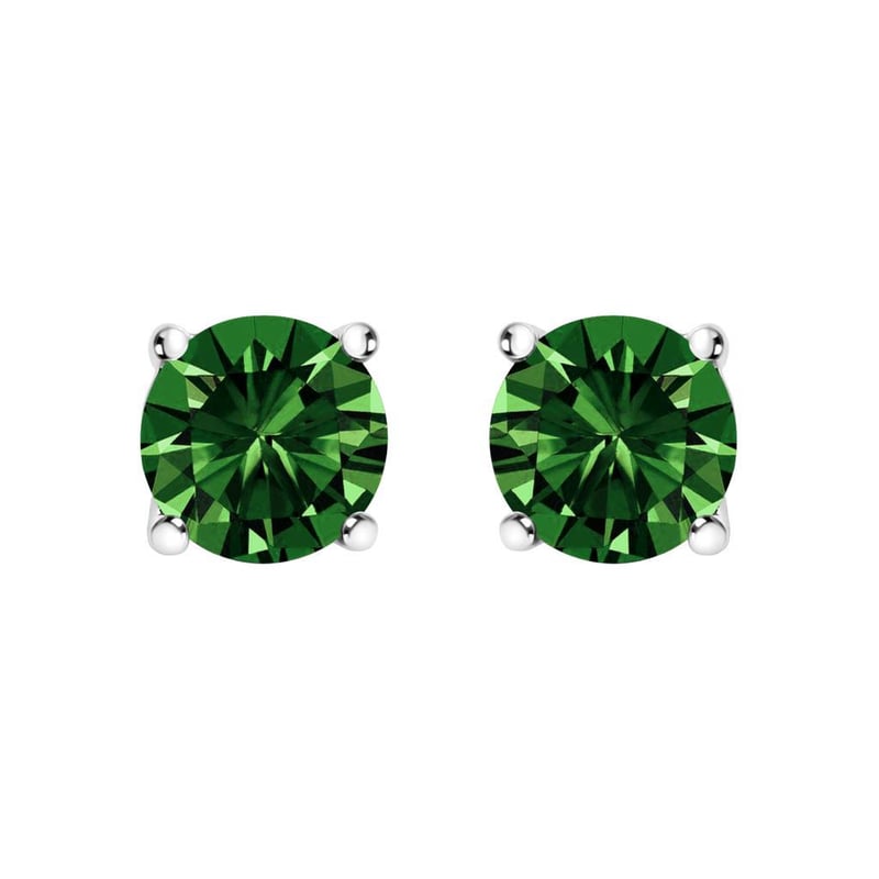 14K White Gold 1 1/2 Cttw Lab Grown Green Diamond Classic Solitaire Stud Earrings Embrace timeless elegance with these exquisite 14K white gold solitaire stud earrings, each featuring a 3/4 carat lab-grown green diamond that radiates with vibrant brilliance for a 1.5 carat total weight. Crafted with meticulous care, these jewels are securely nestled in a classic four-prong setting, showcasing each diamond's striking green hue and crystal-clear clarity. Rhodium plating enhances the white gold's durability and luster, ensuring a lasting shine. Designed with screw backs, these earrings promise a secure and comfortable fit, making them a perfect complement to both daywear and evening attire. Elevate your jewelry collection with these enchanting studs, a symbol of sophistication and sustainable luxury.