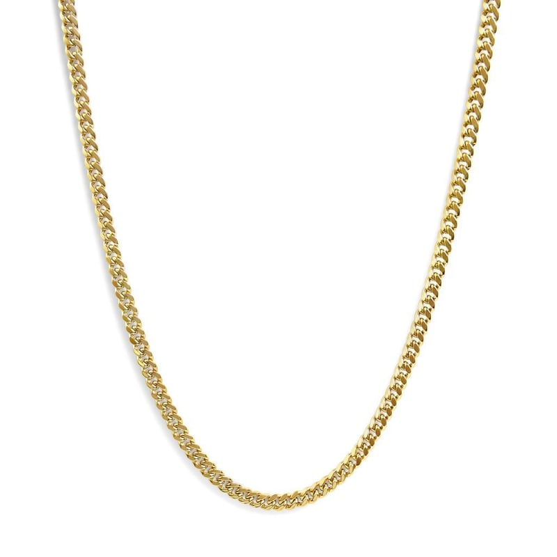 Semi-Solid 14K Yellow Gold 6.1mm Classic Miami Cuban Chain Necklace - 28 Inches Indulge in the timeless elegance of the semi-solid 14K yellow gold necklace, meticulously crafted in a classic Miami Cuban chain design. At a substantial 6.1mm gauge, this 28-inch masterpiece melds durability with a sumptuous touch, embodying both status and style. The interlocking links, characterized by their flat surface, parade a dazzling degree of shine that captures the eye with every turn. Secured with a robust box clasp, it promises a secure fit for both the sartorially sophisticated man and the woman who dares to defy conventions. Whether draped over a crisp dress shirt or accompanying evening wear, this chain is a testament to a refined aesthetic and an investment in enduring luxury.