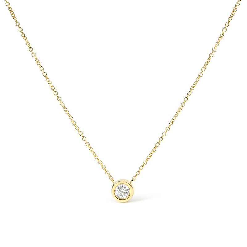 10K Yellow Gold 1/2 Carat Round Brilliant-Cut Diamond Modern Bezel-Set Solitaire 16"-18" Pendant Necklace (H-I Color, SI2-I1 Clarity)