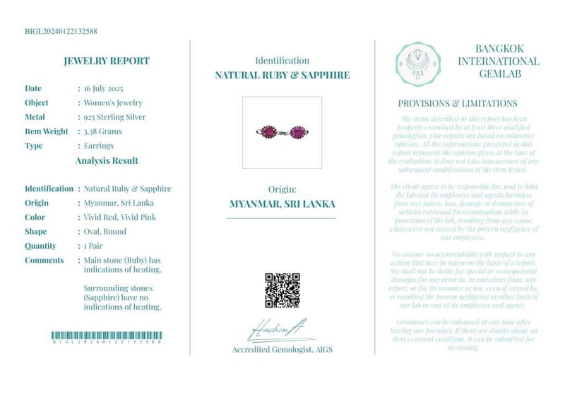 NATURAL BURMESE RUBY & SRI LANKAN SAPPHIRE (UNTREATED) EARRINGS ON 925 SILVER - WITH CERTIFICATE