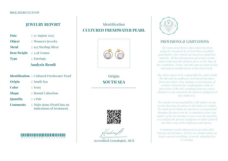 Comments : Main Stone (Pearl) Has No Indications Of Treatment.