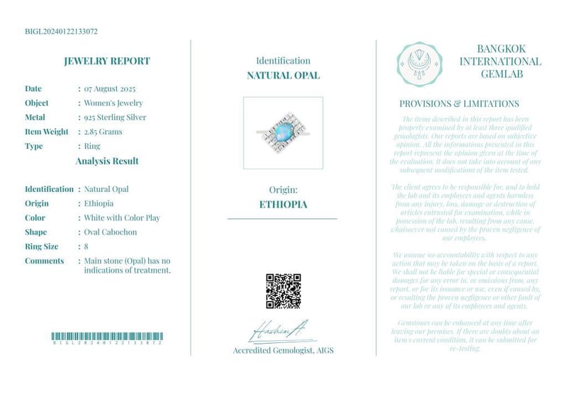 Comments : Main Stone (Opal) Has No Indications Of Treatment.