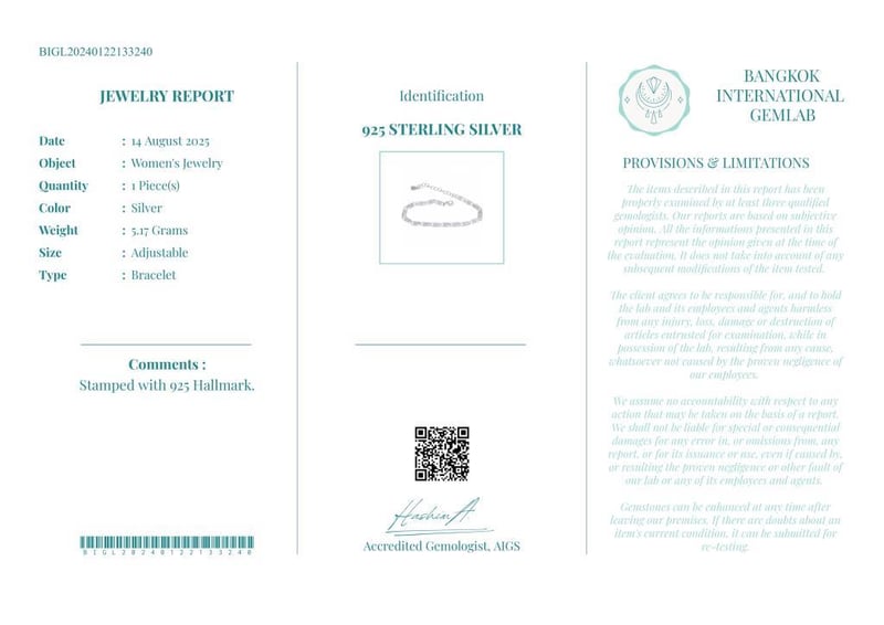 925 STERLING SILVER BRACELET - WITH CERTIFICATE