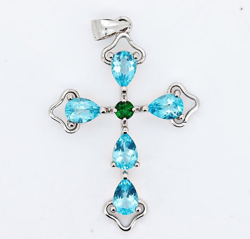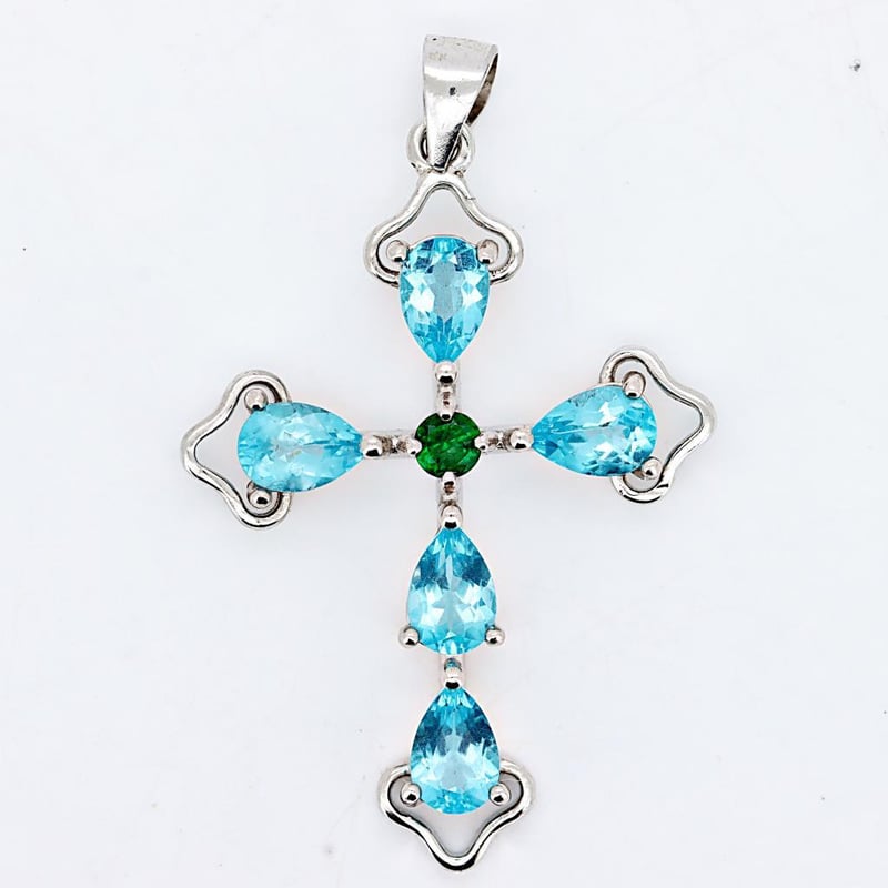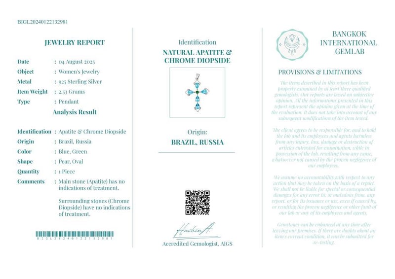 NATURAL BRAZILIAN APATITE & CHROME DIOPSIDE PENDANT ON 925 SILVER - WITH CERTIFICATE