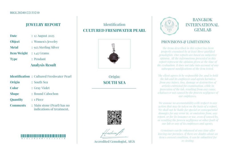 Comments : Main Stone (Pearl) Has No Indications Of Treatment.