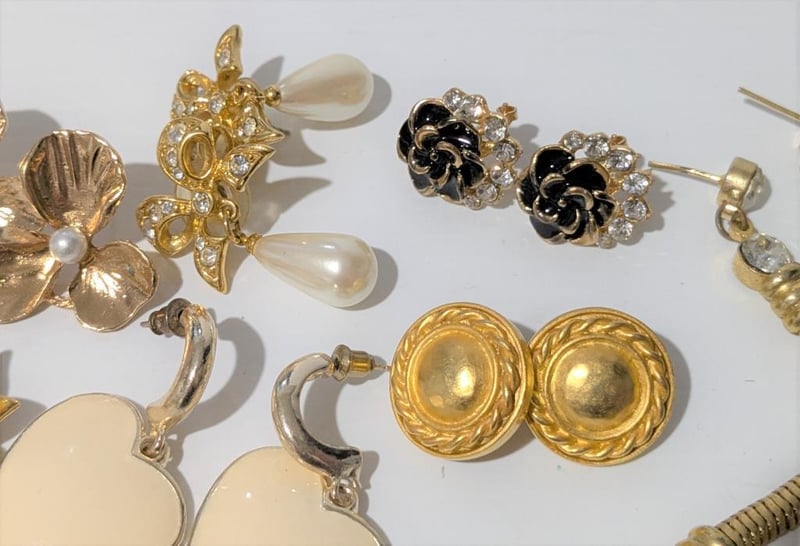 ASSORTED EARRINGSIncluding Flowers, Enamel Hearts & Faux Pearls, Qty Of 7 PairsCondition: Good - Refer To Images+22