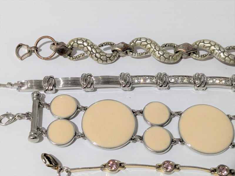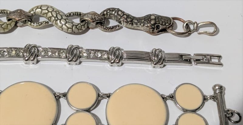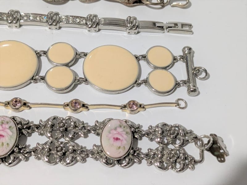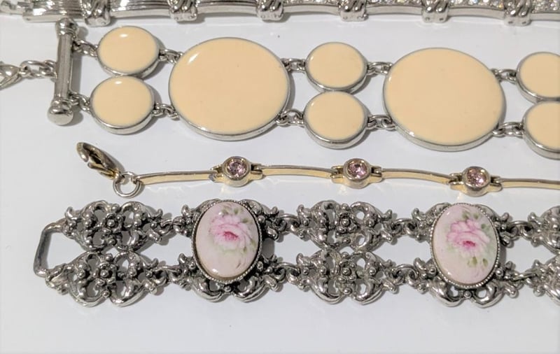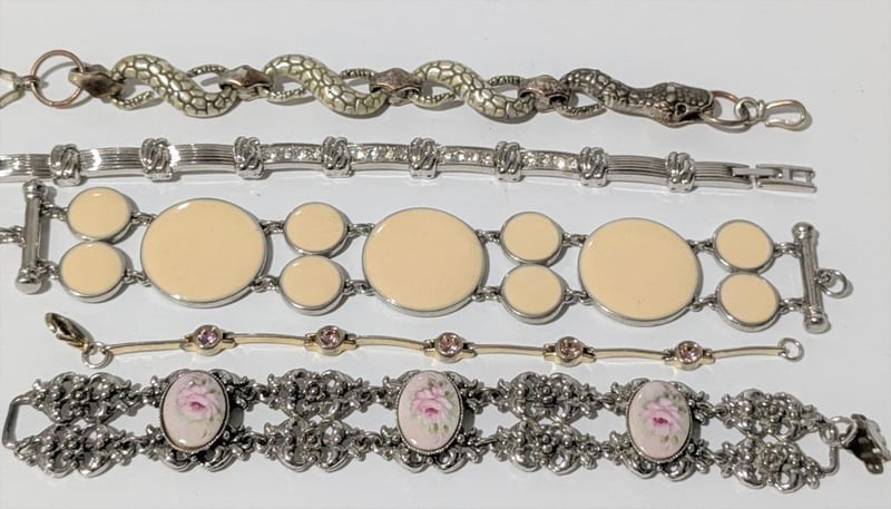 ASSORTED VINTAGE STYLE BRACELETSIncludes Floral Motif, Round Medallion Style & Snake, Qty Of 5Condition: Good - Refer To Images+26