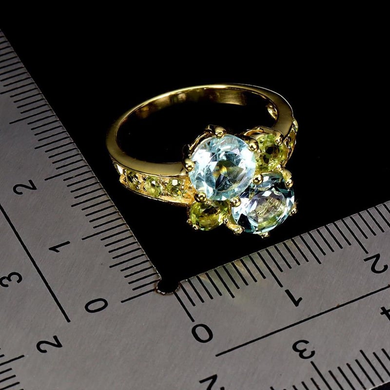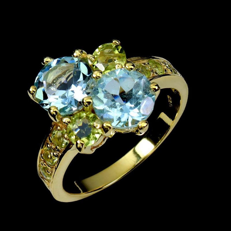 NATURAL TOPAZ & PERIDOT RING. Natural Topaz & Peridot Ring. Made In Solid Sterling Silver And Plated In14K Yellow Gold. Features Natural Sky Blue Topaz And Natural Green Peridot. Ring Size 8 Condition: Good - Refer Images 0488375+5