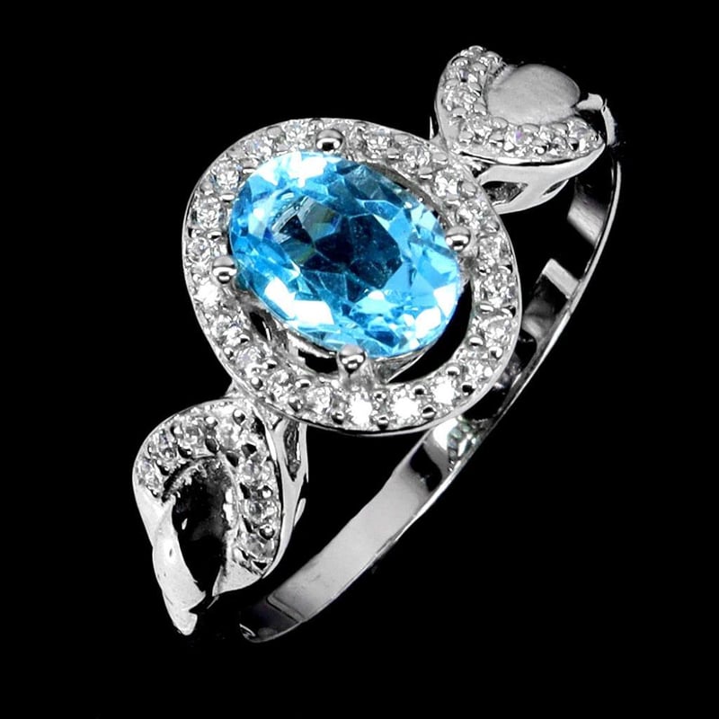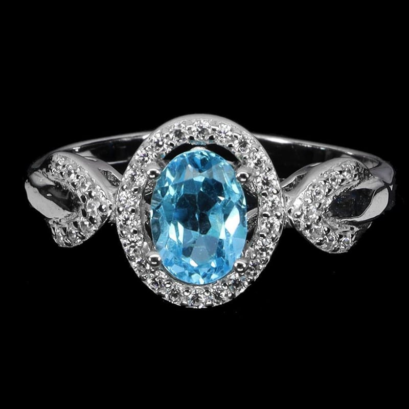 Natural Swiss Blue Topaz Ring. Made In Solid Sterling Silver And Plated In14K White Gold. Features Natural Swiss Blue Topaz And Sparkling Czs. Ring Size 7