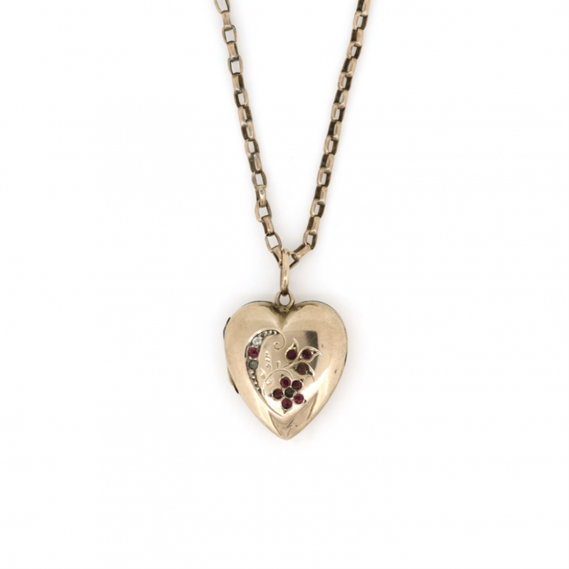 VINTAGE 9K ROSE GOLD, CREATED GEMSTONE, HEART SHAPED LOCKET.