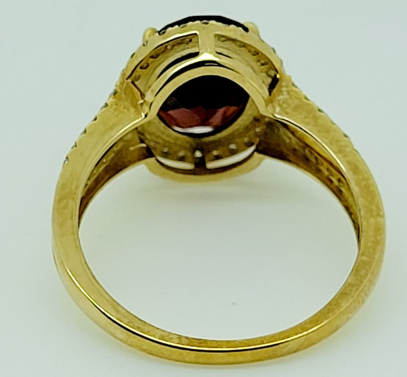 10 CT YELLOW GOLD NATURAL DIAMOND & GARNET RING1 Garnet = 2.93 Carat52 Round Brilliant Diamonds = 0.30 CaratRing Weight: 2.68 GramsCondition: Good - Refer To Images488971+19