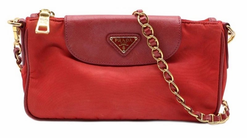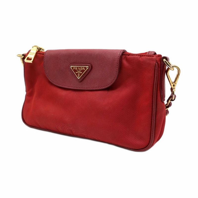PRADA RED TESSUTO NYLON AND SAFFIANO LEATHER SMALL CROSSBODY BAG