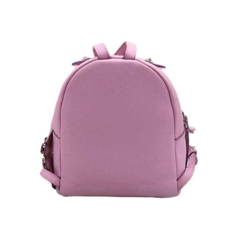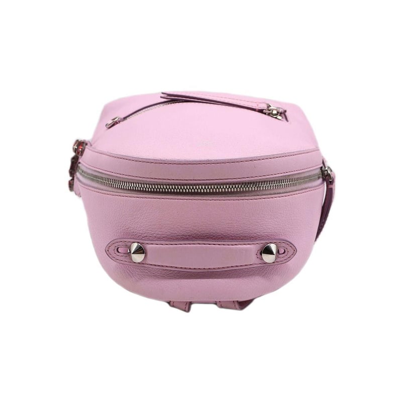 Leather with silver-tone hardware, single top handle, a front zipped pocket and dual backpack strap.