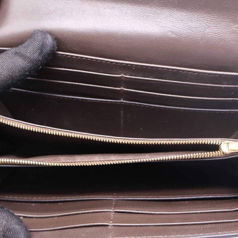 MULBERRY DARLEY WALLET Exterior Material Leather with gold-tone hardware, Postman's lock closure and a rear patch pocket. Interior Material Leather lining with two main compartments, a zipped compartment, two slip pockets and 12 card slots. Length: 19cm Height: 10cm Depth: 2cm Additional Condition Report - Moderate sign of wear and tears on exterior - Moderate wear in interior - Sign of wear and scratches on hardware Comes With - Original Dustbag - Certificate of Authenticity CROSSED DOCKED 155557+11
