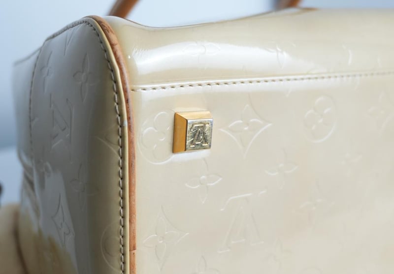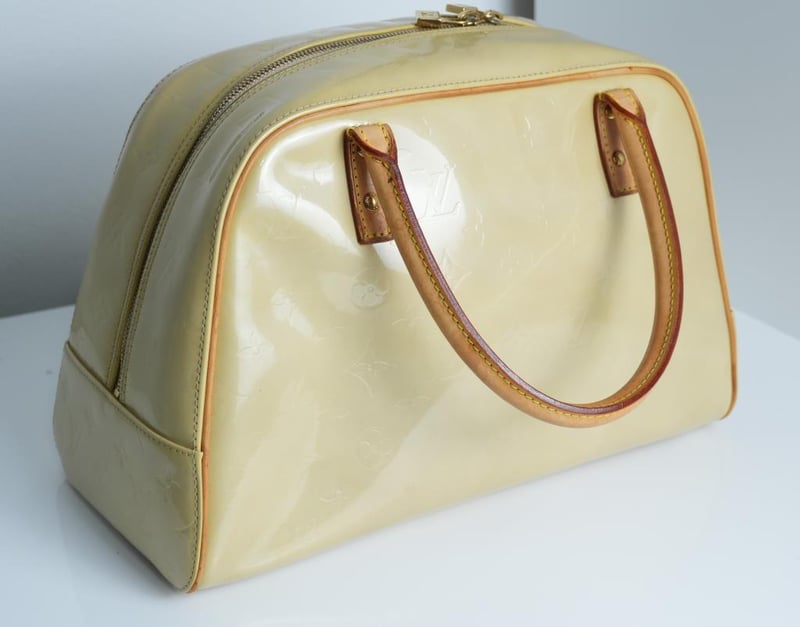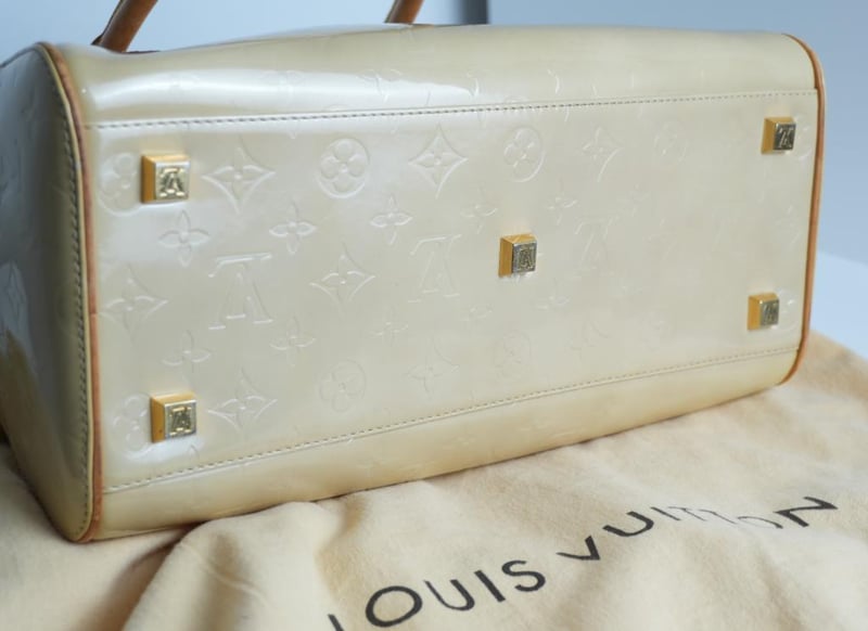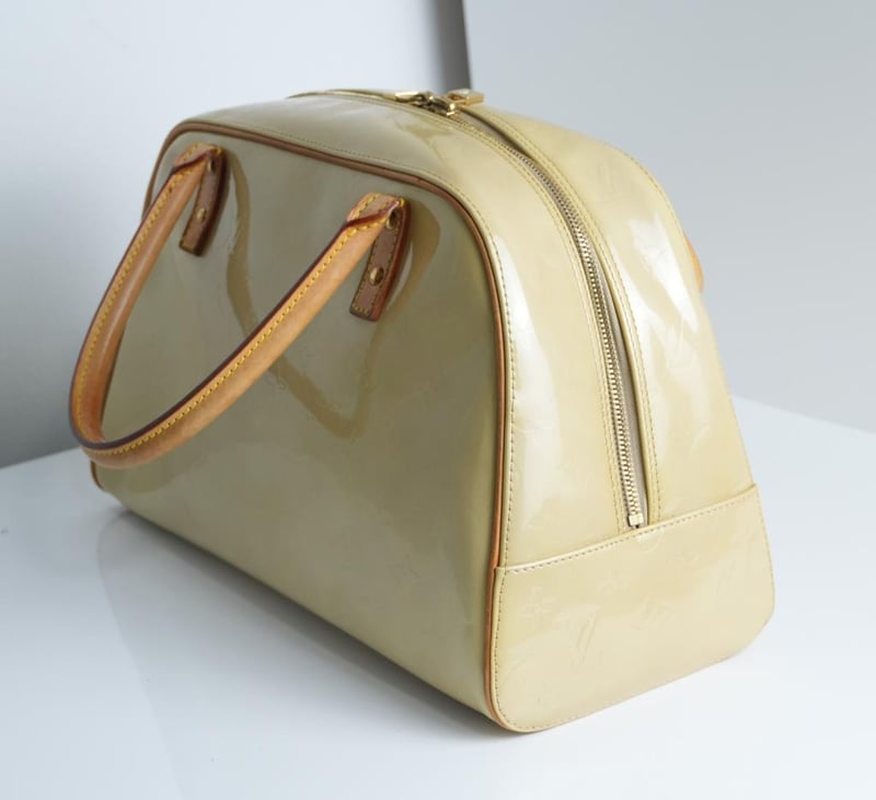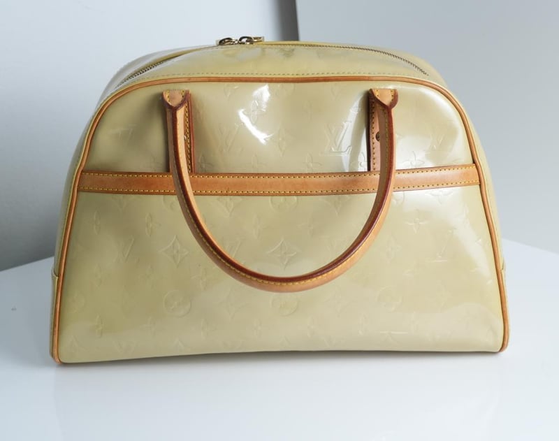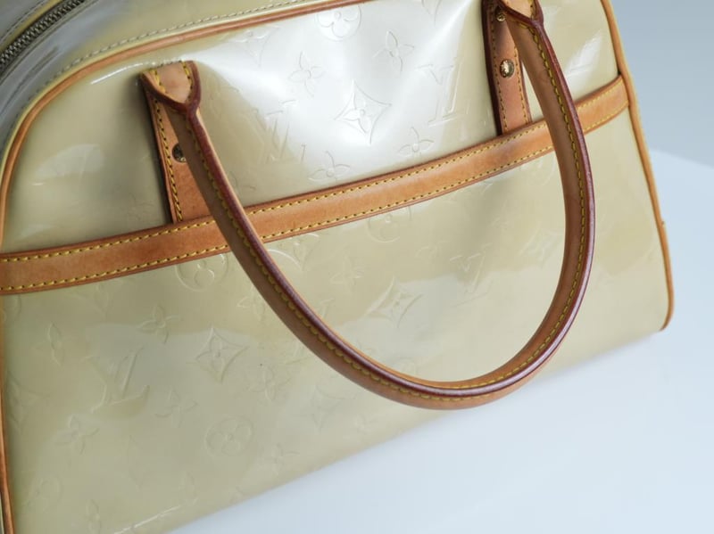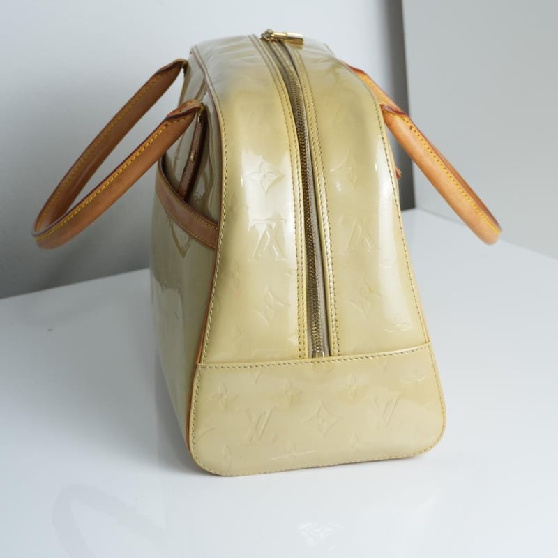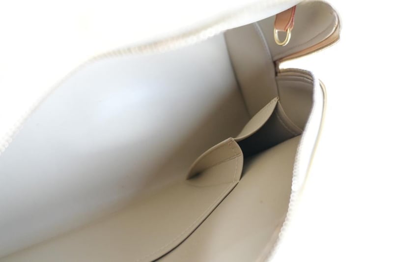 LOUIS VUITTON TOMPKINS BAG IN CREAM VERNIS LEATHER Color And Materials: Cream Colored Vernis Leather With ‘tan’ Colored Leather Accents Includes: Handbag Comes With Louis Vuitton Dust Cover. Dimensions: Length Cm: 21. Width Cm: 35. Depth Cm: 16 Condition: Good With Some Signs Of Wear, Consistent With Light Use 488054+1