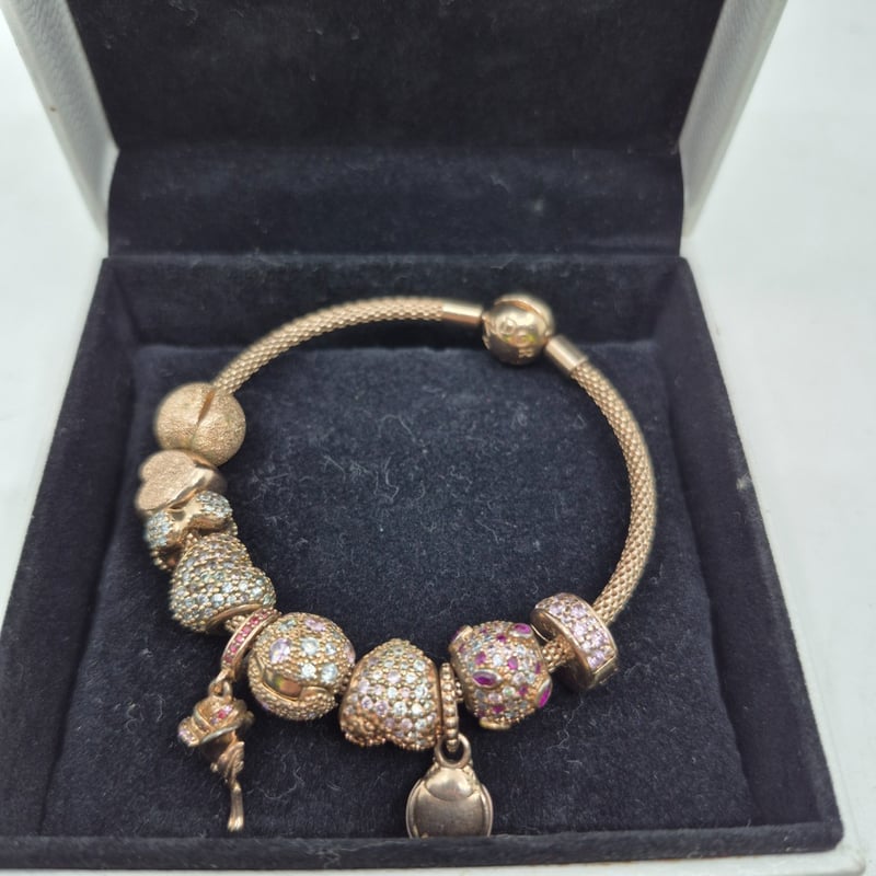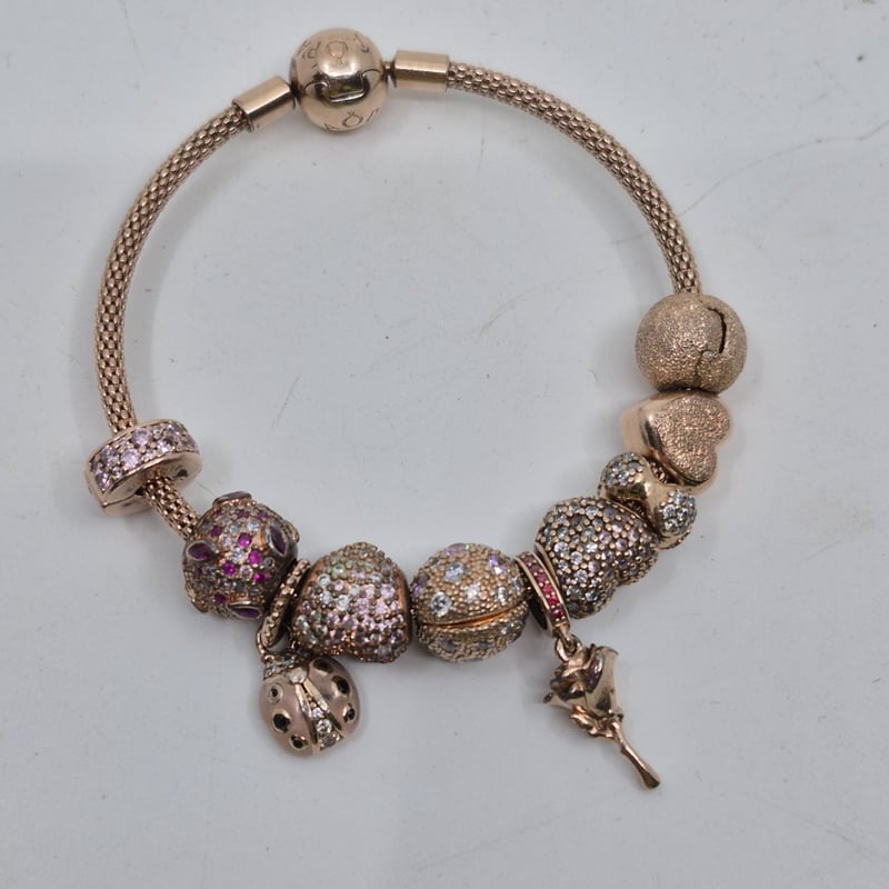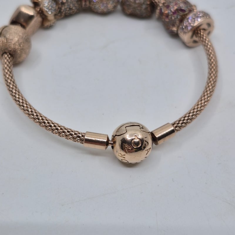 PANDORA ROSE GOLD CHARM BRACELET WITH CHARMS