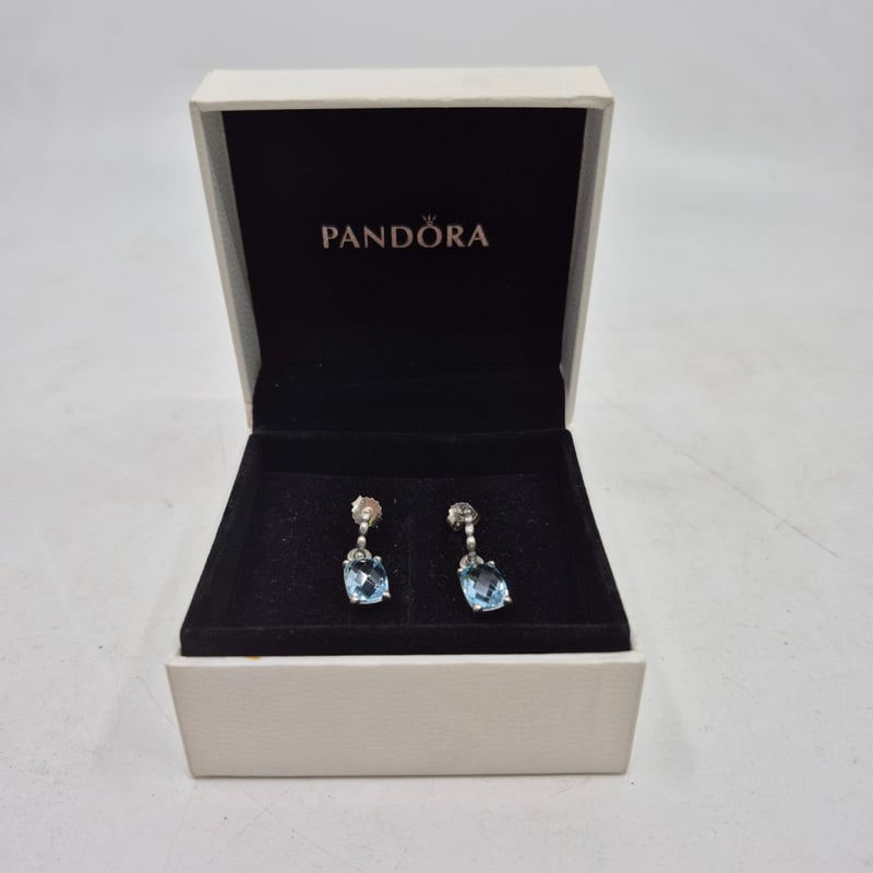 PANDORA STERLING SILVER BLUE DROP EARRINGS