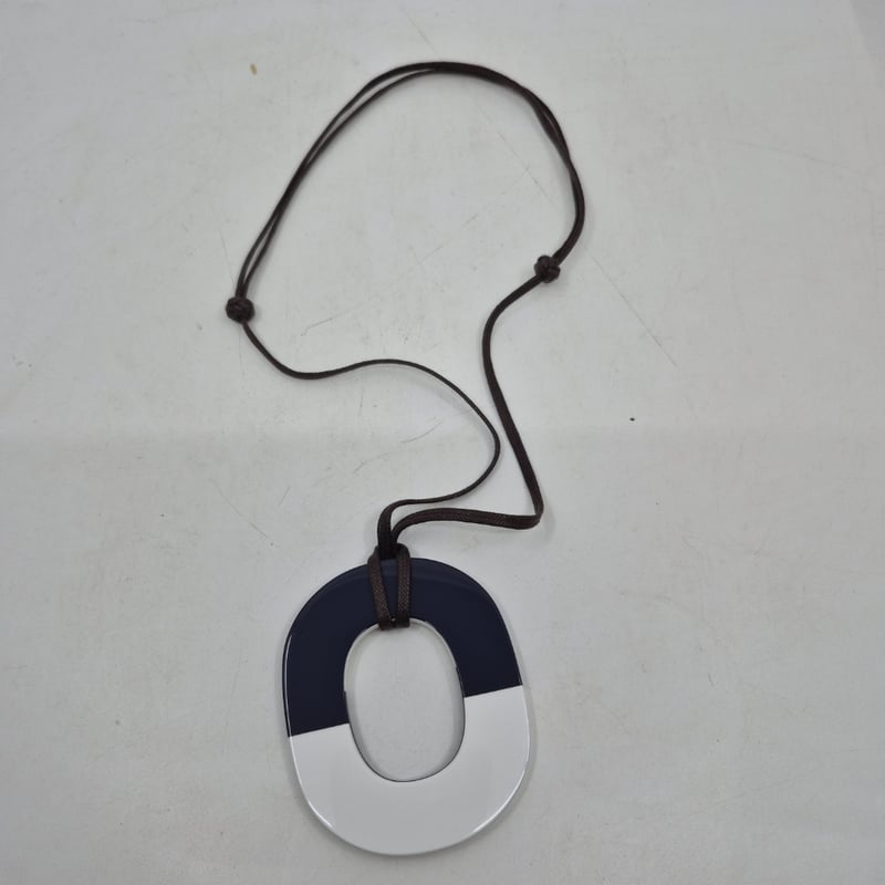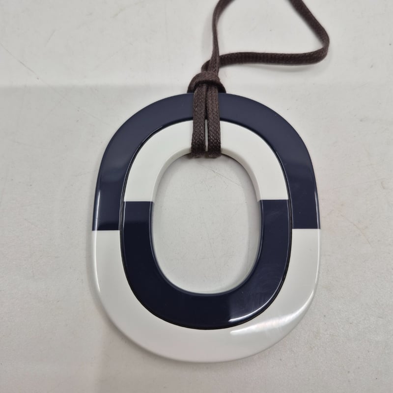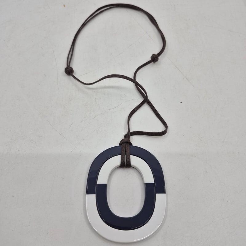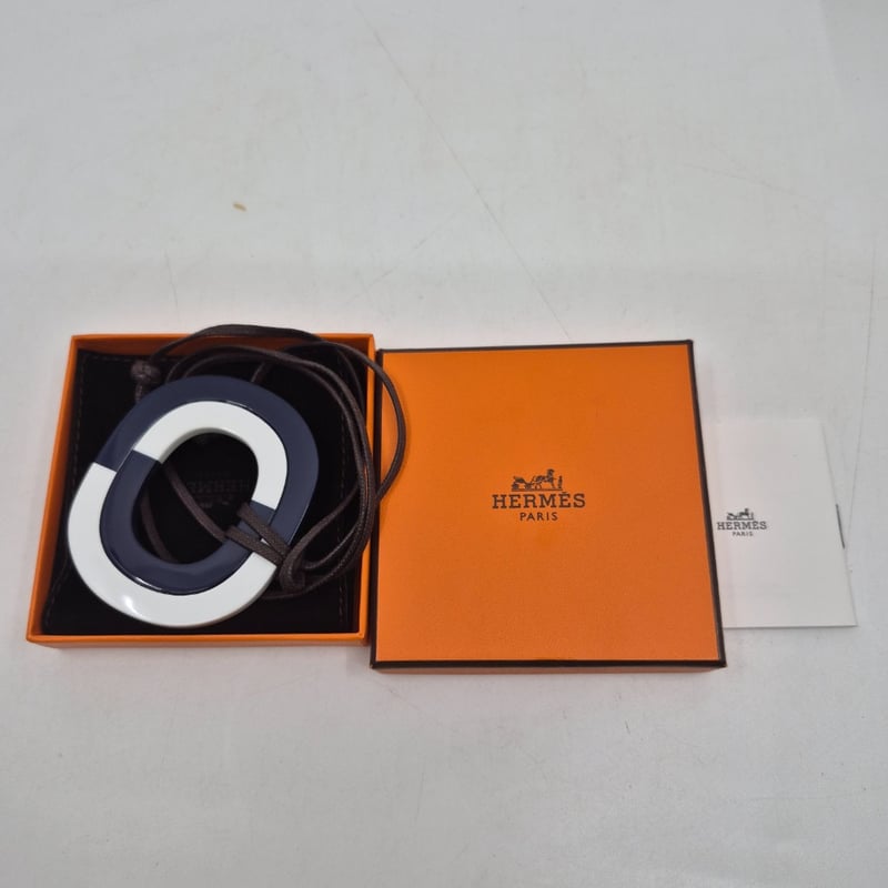 HERMÈS PARIS NAVY AND WHITE ENAMEL PENDANT NECKLACE WITH BROWN CORDCondition: Good - Refer To Images586182+46