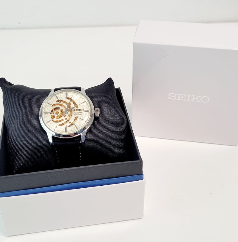 SEIKO PRESAGE ILLUMINE CASE DESCRIPTION: STAINLESS STEELCASE SIZE: 40MMBRACELET: LEATHERMOVEMENT: AUTOMATICBOX: INCLUDEDPAPERS: NOT INCLUDEDCondition: Good - Refer To ImagesAdditional Information: Limited Edition : 0520/5000488385+1