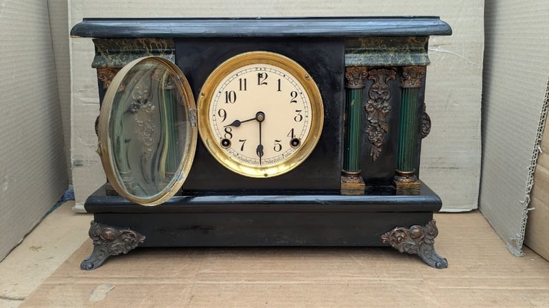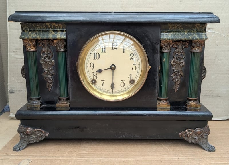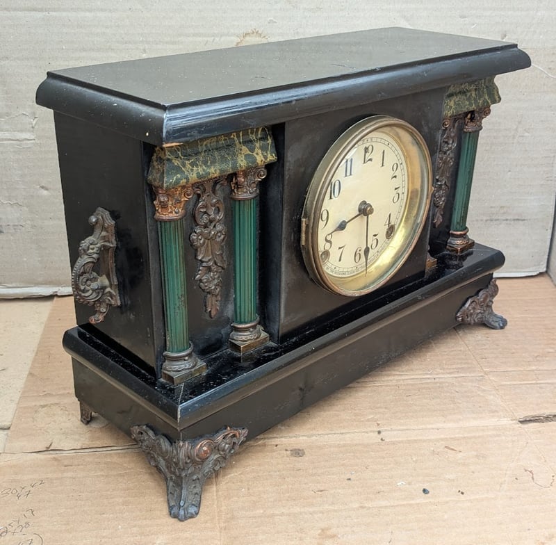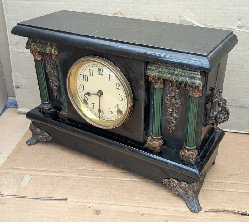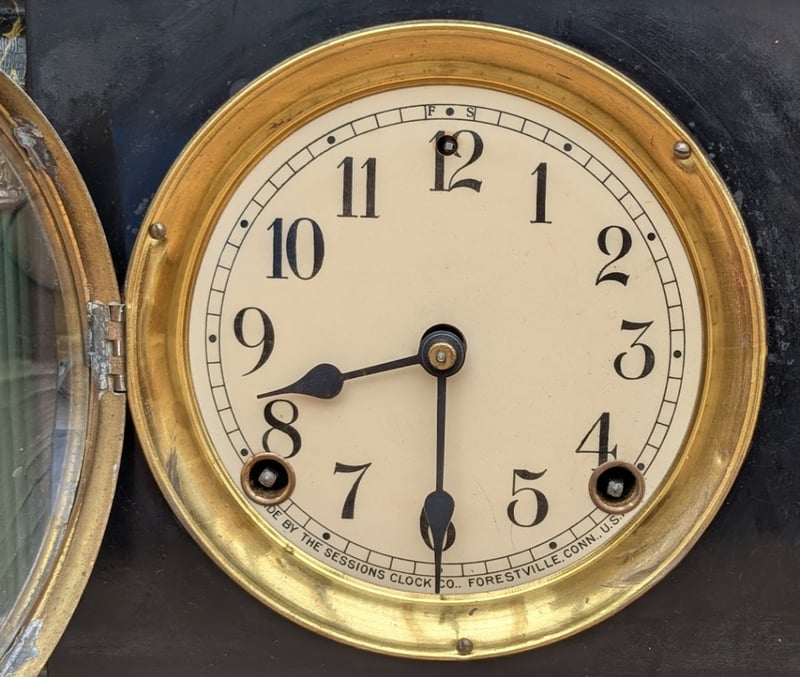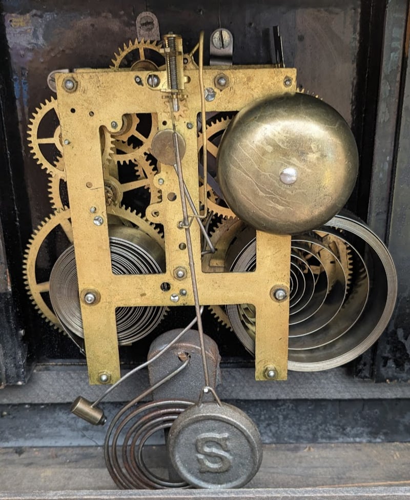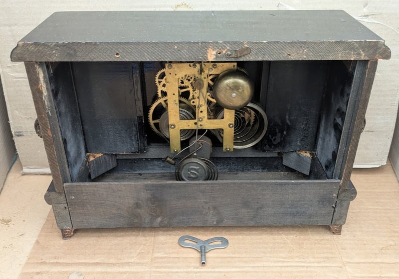 VINTAGE MANTLE WINDING CLOCK BRASS MECHANISM WITH KEY, MADE IN FORESTVILLE CONN USA